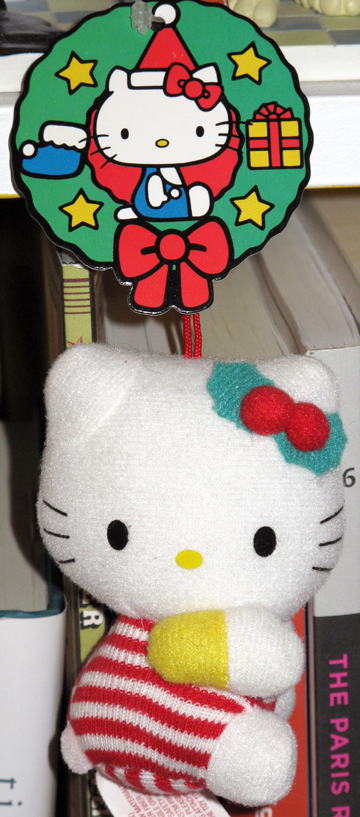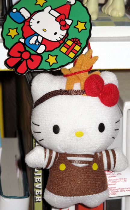 I got these Hello Kitty ornaments last year, but I still think I’ll put them on the tree this year too! π They aren’t very large, but they are certainly cute. One kitty is wearing a red striped outfit with holly berries as a bow and the other kitty is wearing a brown jumper with reindeer antlers on her head. Click the pictures to enlarge. π