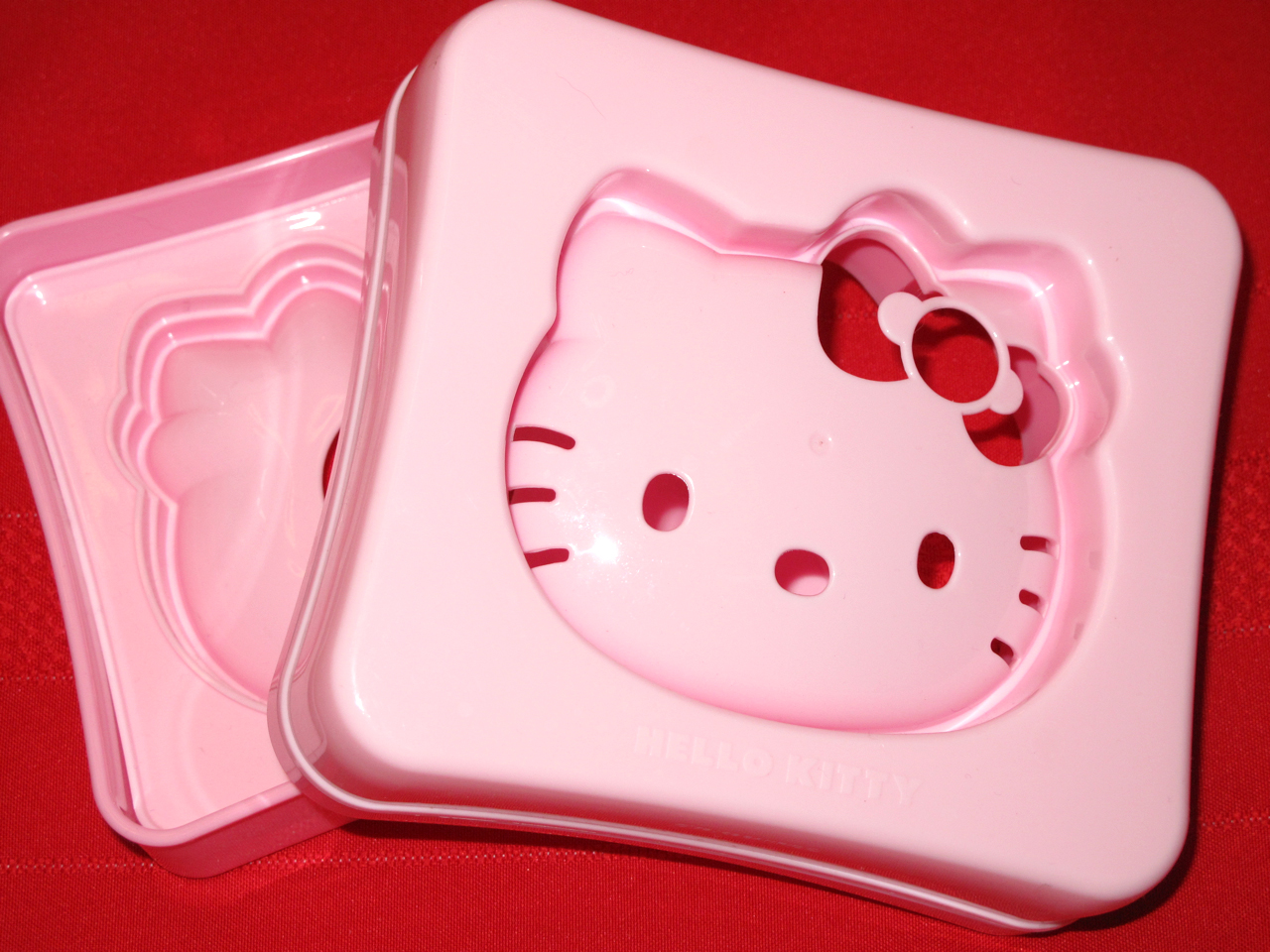 It is time to get rid of those same old, boring sandwiches! Now there’s the Hello Kitty sandwich press to turn your sandwiches into cute Hello Kitty faces! It works best with regular kinds of bread, especially with white bread and peanut butter & jelly sandwiches. You make your sandwich and then squish it in this sandwich press and then your sandwich is Hello Kitty shaped! To get her eyes and bow to show up you have to sprinkle something on the sandwich like chocolate powder or something. Super fun! A good way to liven up a boring lunch!