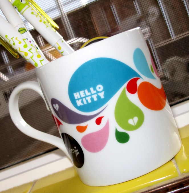 I’m using this supercute Hello Kitty Momiji cup for holding pens, because I don’t want to mess it up with liquids! You can find more awesome Momiji Hello Kitty stuff at http://lovemomiji.com/. The last picture shows the inside of the cup where there is a cute Hello Kitty surprise! 🙂