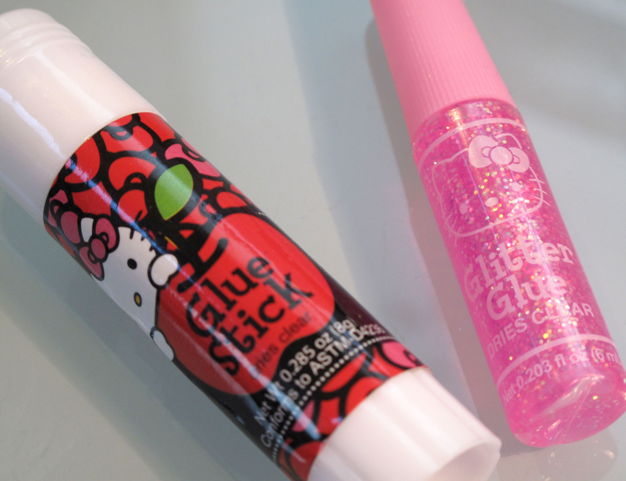 OMG yes, they do make Hello Kitty glue! haha. One is a glitter glue and the other is a simple glue stick. Why Hello Kitty glue? Because, that’s why! Why not?!? Better cute than plain! hehe. Click the photo to enlarge. 🙂