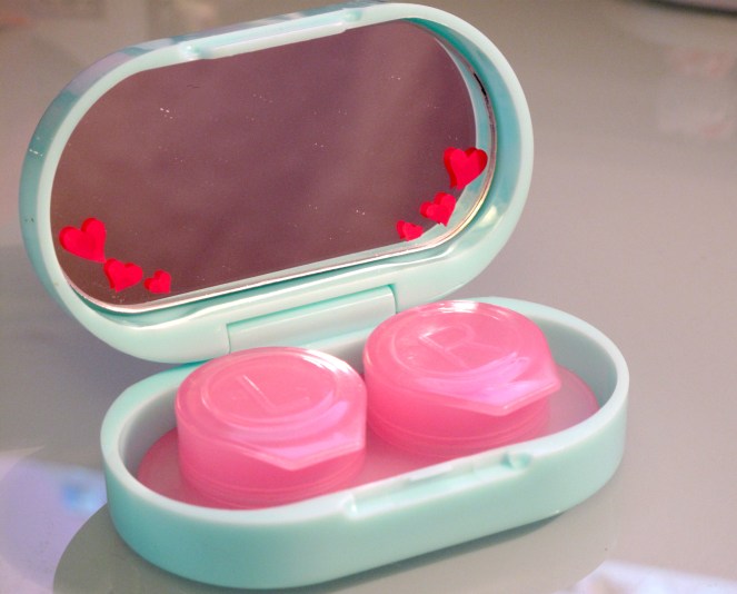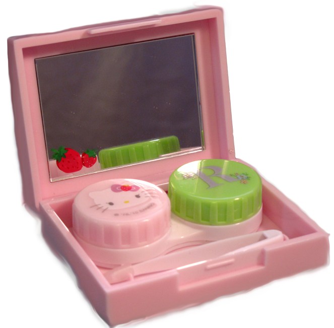 I wear contacts, and it is important to keep the contacts clean and safe, so what could be better than some HK contact lens cases!? I got these because I think they are really sweet with hearts and strawberries and they both have mirrors on the inside. Click the pics to enlarge. 🙂
