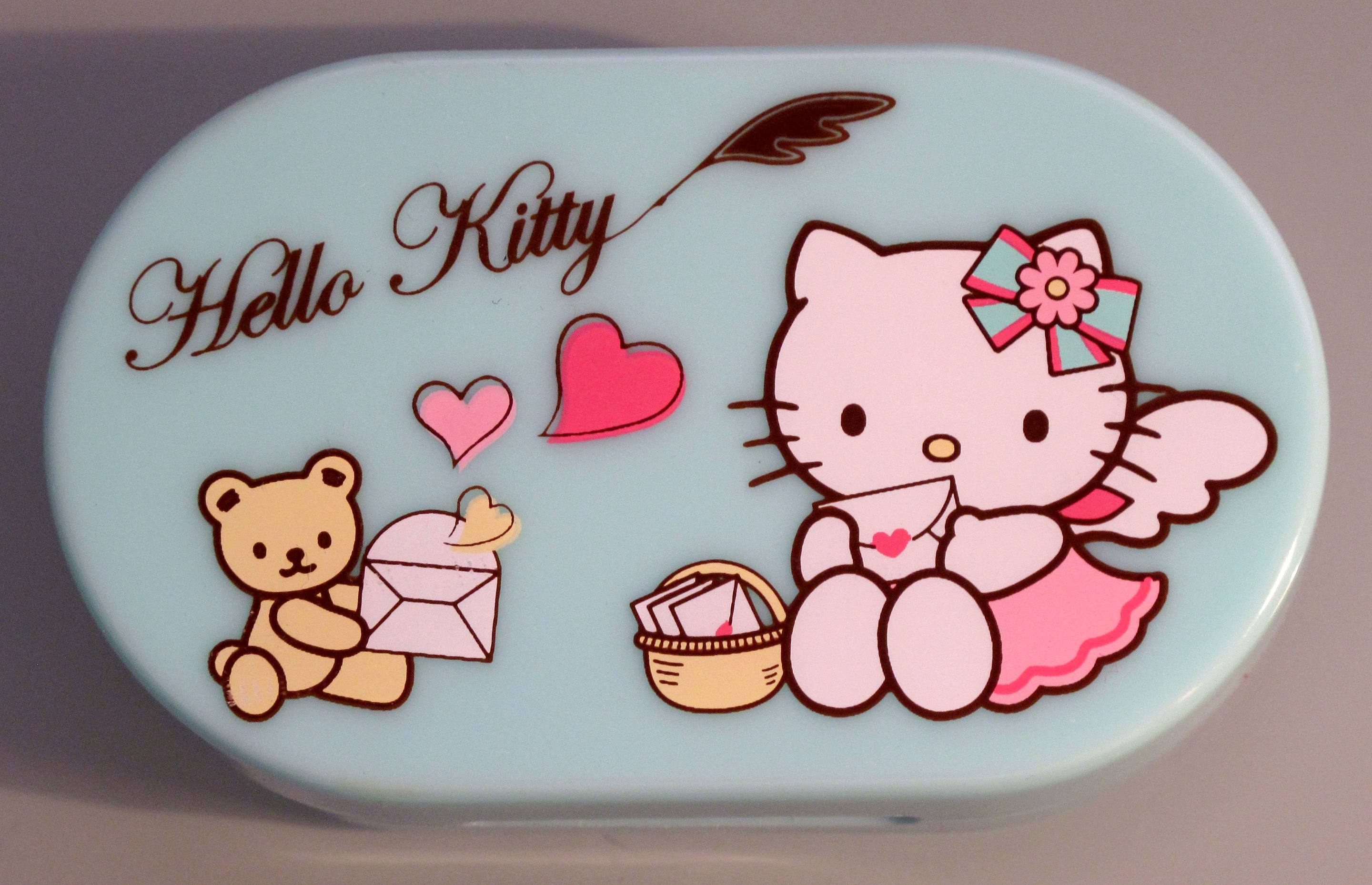 Love this mint green Hello Kitty heart mirror! It is so sweet and on the inside it has little hearts on the mirror. Great to carry along with you in your bag or purse! Click the pics to enlarge! 🙂