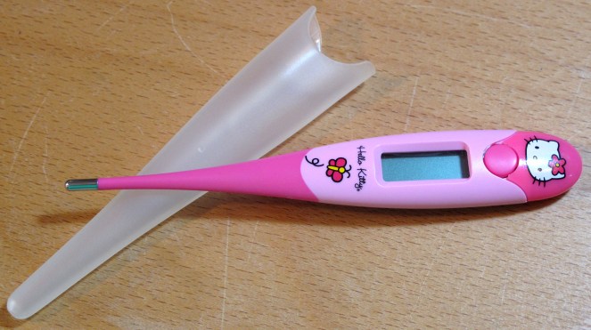 Have a fever? Hello Kitty comes to the rescue! I was organizing my HK first aid kit when I remembered that I have this Hello Kitty digital thermometer. It works great with just one touch of the button and it is also super cute! It comes with a case to keep it clean and after each use you just wash it. 🙂 Click the pic to enlarge! 🙂