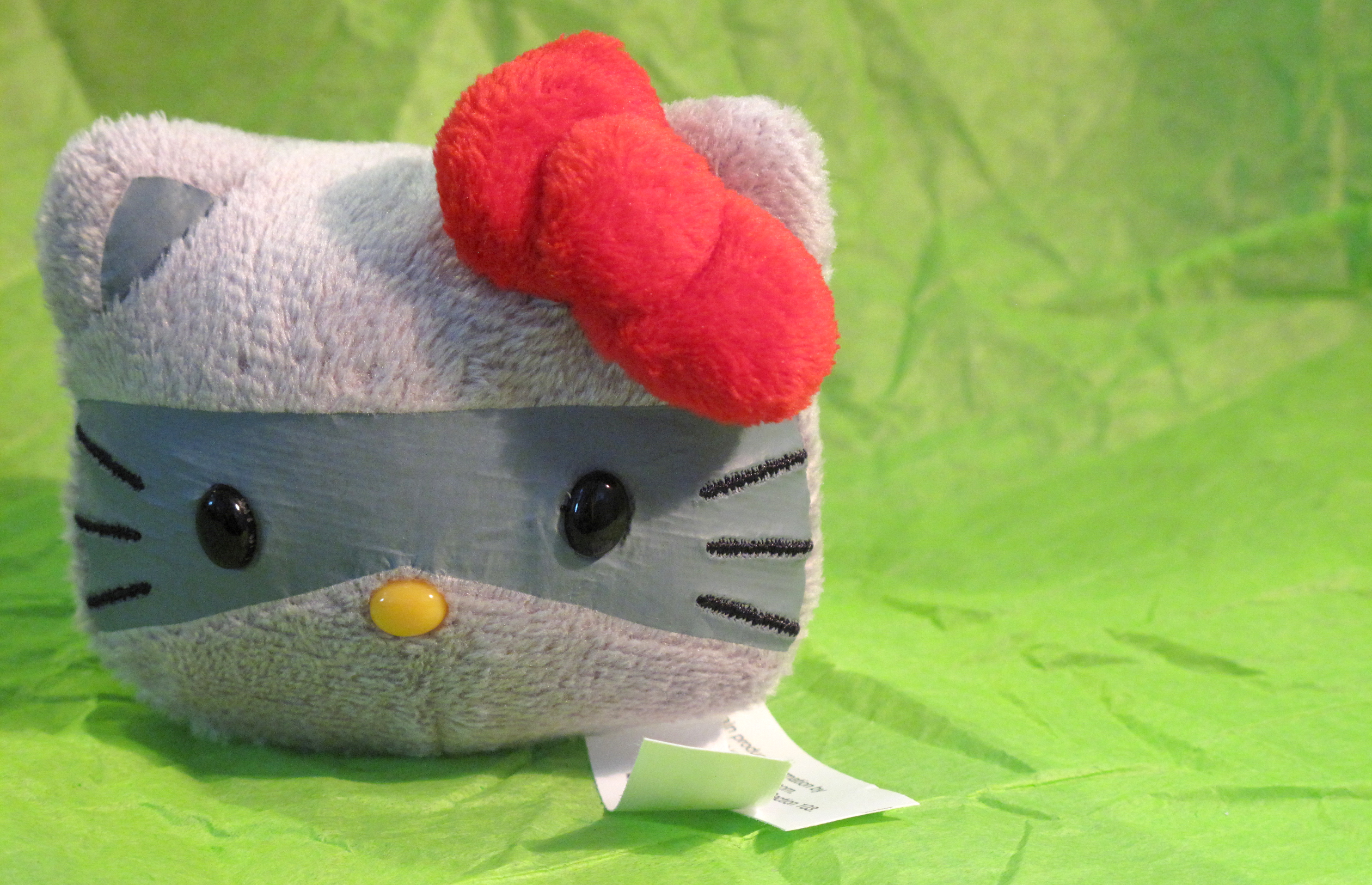 I had to go grocery shopping today, and it would have been totally boring except that I saw these Hello Kitty Easter plushies and they totally made shopping fun! One is dressed as a lamb and has a purple bow and ribbon and the other is a pink bunny with a green bow and ribbon. They are super soft too! So, they jumped into my cart and kept me company while I bought the rest of my groceries. 🙂 Click the pics to enlarge. 🙂