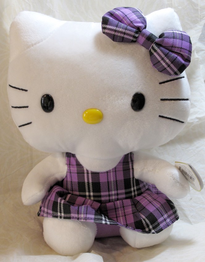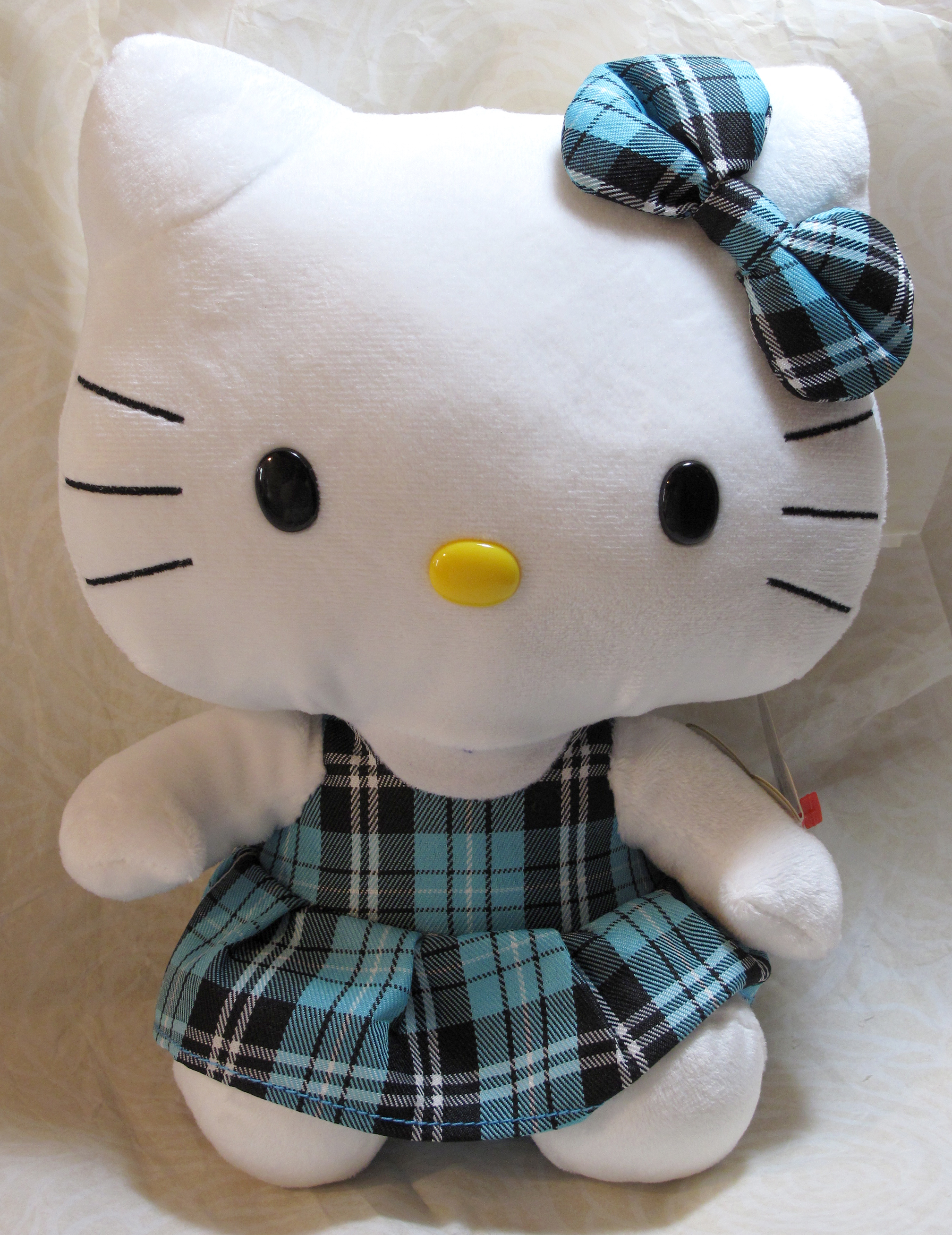 OMG, these plushies are so adorable! They have plaid bows to match their plaid dresses and they are super soft! There is also a pink plaid Hello Kitty, but I don’t have that one. Boo! lol. Click the pics to enlarge. 🙂