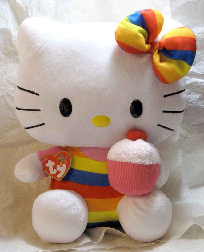 I love Hello Kitty, but I also love cupcakes. In fact, right now I’m wearing a cupcake dress!!! hahaha. Anyway, what could be better than a Hello Kitty WITH a cupcake?!? Add rainbows to that and you have the trifecta! lol. Click the picture to enlarge. 🙂