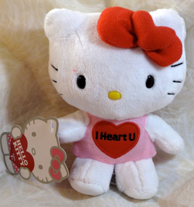 I’m posting this a bit late, but I got this beautiful and thoughtful Hello Kitty for Valentine’s Day from my good friend Bruce! 🙂 She is so wonderful and it made me feel warm and fuzzy to get something so sweet! Yay for Valentine’s Day and good friends! My pen slipped and I accidentally got some red ink over her eye that I haven’t been able to get off yet, but she still looks pretty as can be with the red heart patch on her chest saying “I Heart U!”