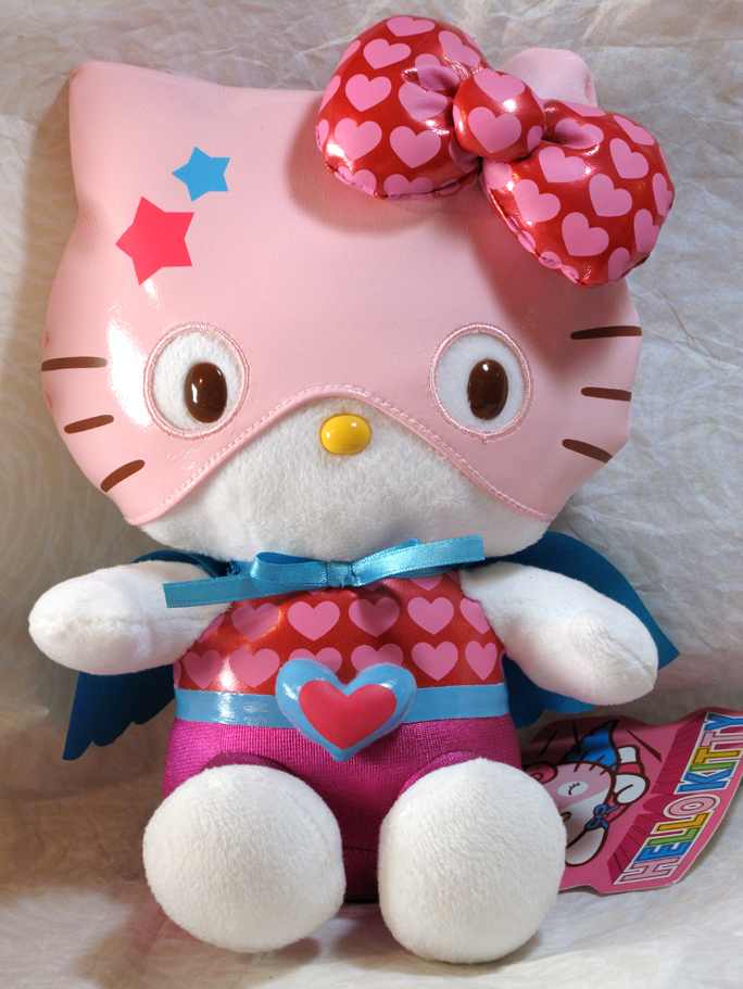 This is one of my favorite plush kitties. It is the Superhero Hello Kitty! She’s got her cape and mask and is ready to rescue those in need! Armed with love, peace and kindness, Superkitty is a hero that we could all wish to be like! Yay for Super Kitty! Click the images to enlarge. 🙂